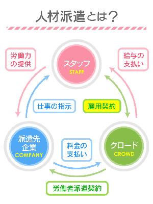 雇用契約は派遣元(インキョウ)と結び、給与も派遣元(インキョウ)から支払われます。